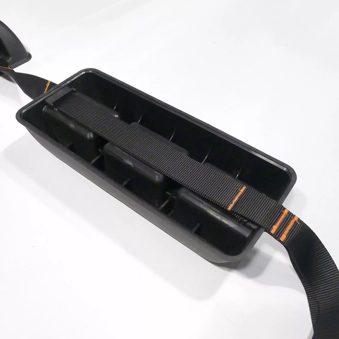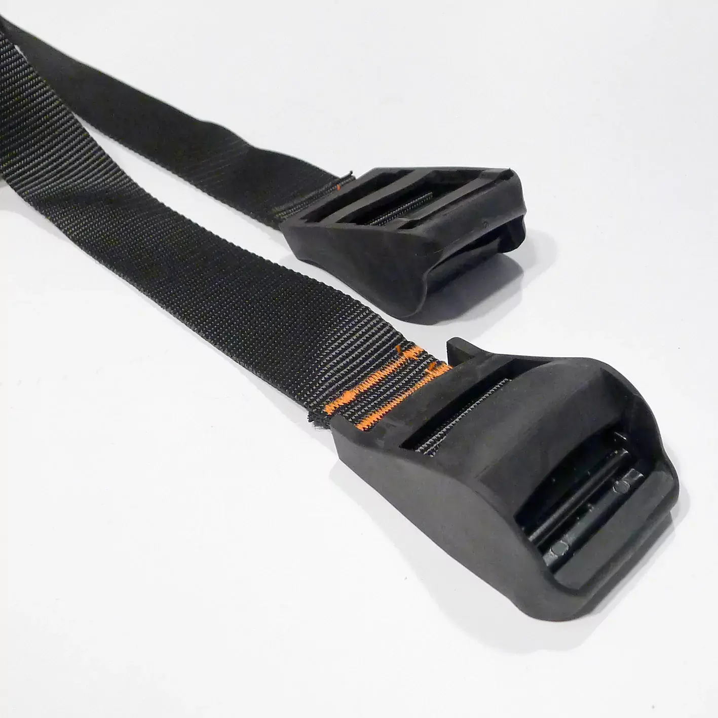 - Pass the strap through the car and fasten it to itself, using the safety buckle.