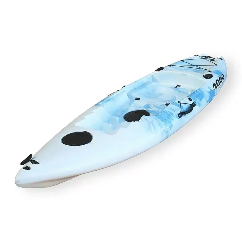 A single seat kayak for one person - White/Blue. A small kayak for sea, lakes and rivers.