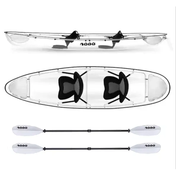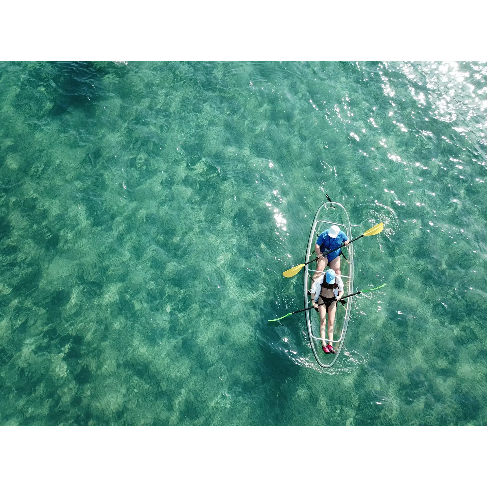 The two-seater transparent kayak is perfect for leisurely paddling and ideal for renting in areas of great underwater interest.