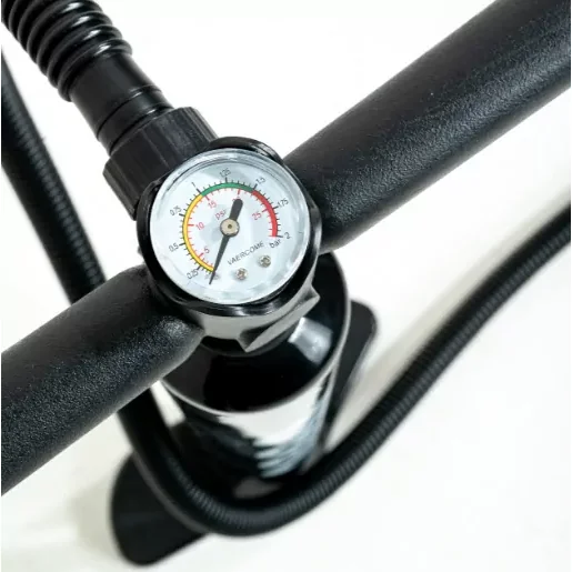 Effortlessly inflate your inflatable paddle board with this durable hand pump, featuring a built-in pressure gauge.
