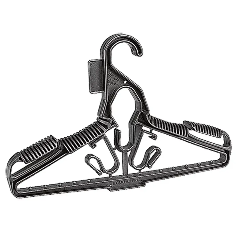 The SCUBAPRO Universal Hanger is a patented device designed to efficiently organize diving gear in a compact space. It provides dedicated hanging options for various equipment, ensuring proper storage and maintenance.