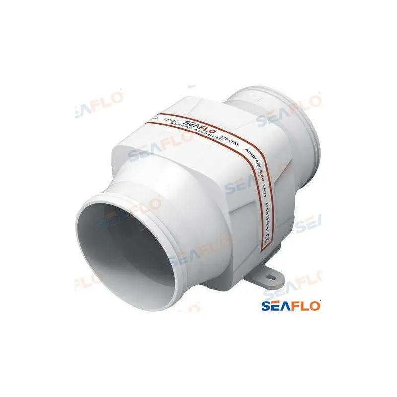 The Seaflo 12V tunnel-type gas extractor is designed to provide necessary ventilation in bilges, engine compartments, and enclosed spaces on board. It offers maximum efficiency thanks to its 4-blade fan and durable reinforced plastic body.