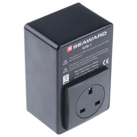 The IEE Code of Practice requires RCD protected devices to be tested to ensure correct performance. Seaward NTB-1 Portable RCD Isolator. The NTB-1 is designed to eliminate the risk of tripping the main RCD when carrying out RCD trip time tests with RCD test instruments. It isolates the electricity supply to the RCD under test, allowing the test operative to continue testing without the worry of causing disruption to the premises they're working on by tripping the main RCD. In the past, isolation transformers have been used for this purpose, but these are bulky and typically weigh around 10kg in comparison to the Non Trip Box's (NTB) lightweight 0.6kg. The NTB-1 is portable and can be used with any test instrument which is used to carry out the RCD trip time test. Test portable RCDs without tripping the installation RCD Compact, lightweight and portable Universally compatible with all RCDs and RCD test instruments Can be used in all situations and locations where an RCD test is required 230Vac/ 50Hz