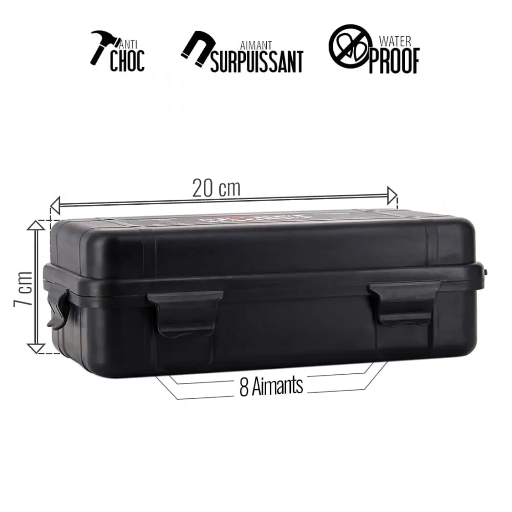 large magnetic black plastic box.. hiding box that can fit almost anywhere out of sight of all.. . matter. plastic.