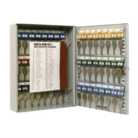 Securely store your keys with the Securikey Key Cabinet 48, featuring a robust design and adjustable hooks.