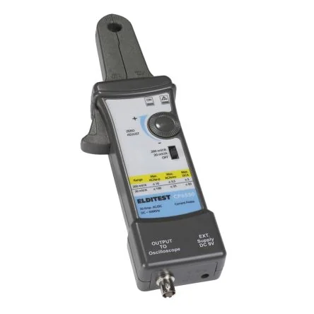 The Sefram current probe for oscilloscope and recorder. It can be used with a mustimeter. It has 300 KHz band width.500kHz bandwidth Dual sensitivity ranges: 5A / 50A Offset adjustment Over range indicator Main adaptor included or battery powered Possible use with a multimeter (with adaptor supplied) Safety : CAT II - 600V and CAT III - 300V