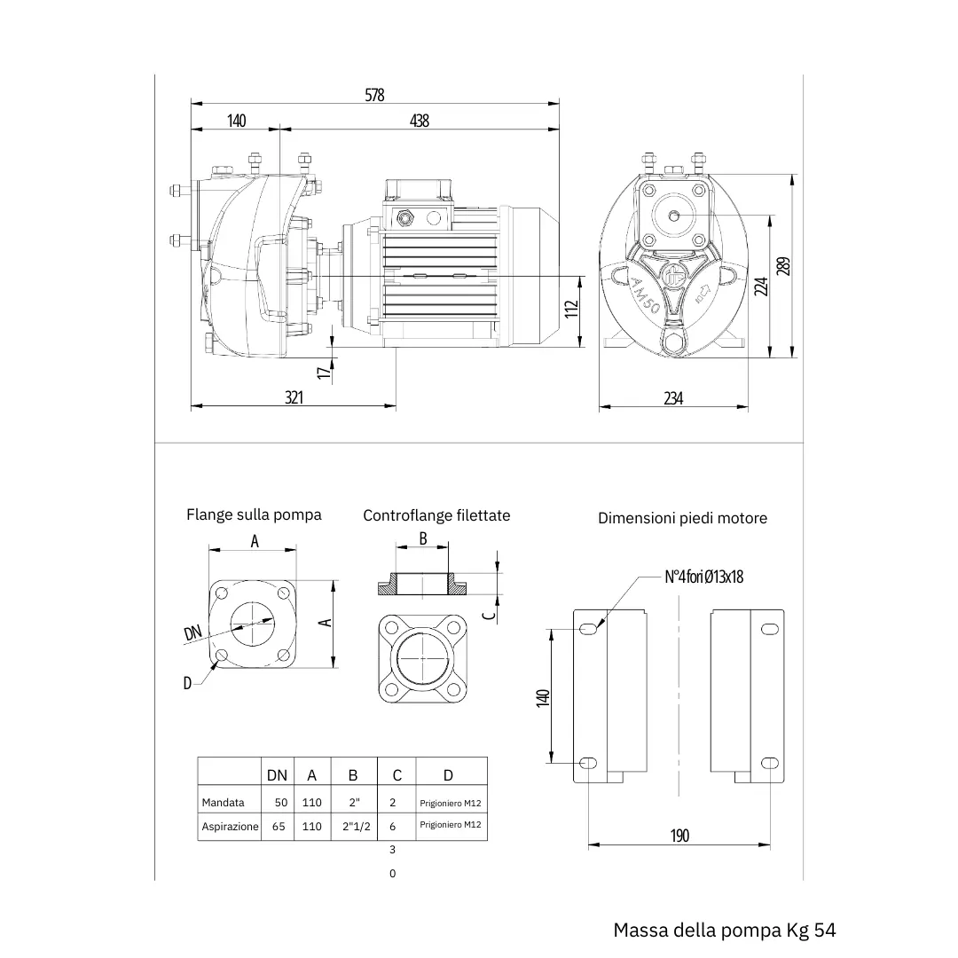 The AM50D5EM2T50 is a self-priming centrifugal pump designed for various applications, particularly in maritime and industrial settings. Its self-priming capability allows it to evacuate air from the suction line, enabling efficient operation even when the pump is situated above the liquid source.