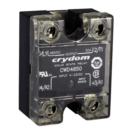 Crydom CW Series Panel Mount Solid State Relays. Crydom CW series panel mount AC output solid state relays offer a back-to-back SCR output for reliable switching of commercial and heavy industrial loads. The CW series SSR's include a removable IP20 touchsafe cover for added safety and is also available with zero voltage turn-on (for resistive loads) or instantaneous turn-on (for inductive loads) outputs. Features and Benefits. SCR Output for heavy industrial loads. LED Status Indicator. UL/CSA/TUV Approved, CE Compliant to EN60950-1. Improved SEMS screw and washer. Housing with anti-rotation barriers. EMC Compliant to Level 3. Epoxy Free Design. Removable IP20 touchsafe cover. DBC substrate for superior thermal performance