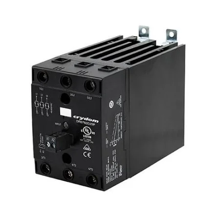 The Sensata / Crydom DR45 is a powerful and compact solid state relay in a DIN rail 45mm wide package offering mounting flexibility (on panel or DIN rail) and convenient input connection options. It has 48 to 600 VAC operating voltage and 30 A rated load current.Built-in overvoltage protection Contactor configuration AC or DC control