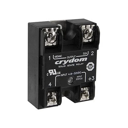 Reliable 50A solid state relay with zero voltage turn-on for minimal noise.