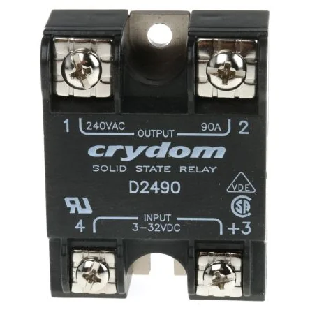 Reliable 240 VAC solid state relay with 90 A load capacity for efficient control.