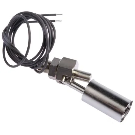 Reliable horizontal float switch with stainless steel body and configurable output.