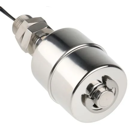 Reliable vertical float switch with stainless steel construction and 1m cable.