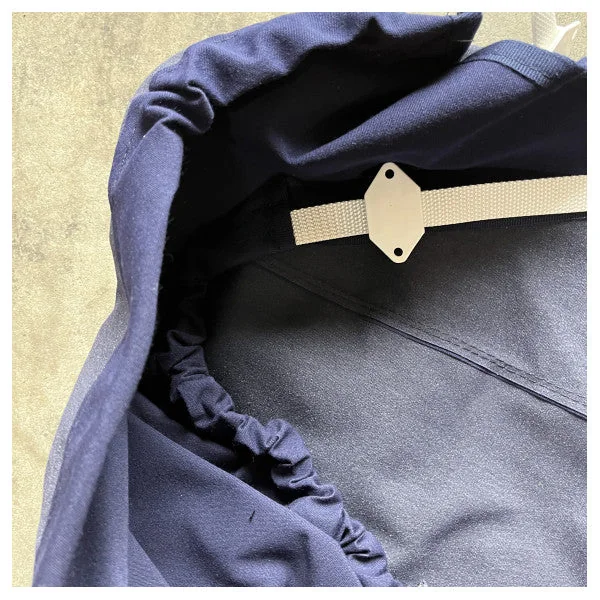 - Material: strong, water-repellent fabric in navy blue