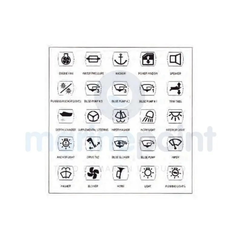 This set of adhesive labels has been designed to facilitate identification of switches, actuators, and electrical controls on nautical panels. Made from durable material, they withstand moisture, abrasion, and UV rays, making them the perfect solution for marine environments.