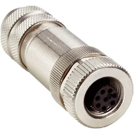 Durable M12 circular connector with 8 contacts, designed for reliable industrial use.