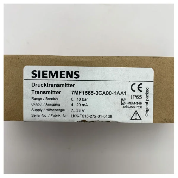 The Siemens 7MF1565-3CA00-1AA1 pressure sensor is the reliable solution for accurate and consistent pressure measurement in various industrial environments. Whether for hydraulic systems, process automation, or machine construction, this sensor delivers excellent performance.