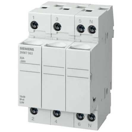 Siemens 20A Rail Mount Fuse Holder for 8 x 32mm Fuse, 3P, 400V - 3NW7333