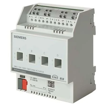 The Siemens switching actuator used for switching capacitive, inductive and resistive load. It has free terminal for connecting and looping through solid, stranded and fine-stranded conductors with conductor cross-sections from 0.5 to 2.5 mm².It has 4 potential-free output.