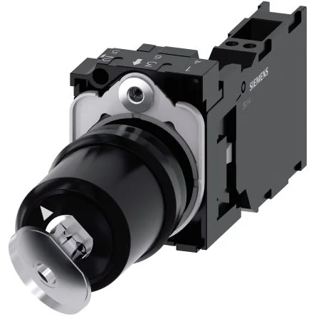 Under the brand name SIRIUS ACT, Siemens offers a unique portfolio of pushbuttons and signaling devices with global product approvals in four modern design lines of rugged genuine metal and high-grade plastic. An innovative snap-on concept makes the task of installing a unit so easy that it can be done with one hand and without any special tools. Groove-free holes are adequate as mounting holes since full twist prevention is already integrated. Thanks to the high degree of protection throughout, the rugged devices are suitable for use in industry and outdoors. Even cleaning with a high-pressure jet is possible. Neither dust, oils, nor caustic solutions can interfere with reliable operation. As well as standard wiring, the devices can also be connected to the controller via PROFINET, AS-Interface or IO-Link. Doing so will help you to reduce wiring time and effort, minimize error sources and have more flexibility. The graphical Online Configurator provides convenient support when selecting and ordering individual devices, enclosures and labels. Extensive documentation (e.g. manual, 3D data, terminal diagram) is available. Note: Single device, please order holders and modules separately.Key-operated switch CES, 22 mm, round, plastic, lock number SSG10, with 2 keys, 2 switch positions O-I, latching, 10:30h/13:30h, key removal O+I, with holder, 1 NO+1 NC, Spring-type terminal