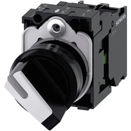 Under the brand name SIRIUS ACT, Siemens offers a unique portfolio of pushbuttons and signaling devices with global product approvals in four modern design lines of rugged genuine metal and high-grade plastic. An innovative snap-on concept makes the task of installing a unit so easy that it can be done with one hand and without any special tools. Groove-free holes are adequate as mounting holes since full twist prevention is already integrated. Thanks to the high degree of protection throughout, the rugged devices are suitable for use in industry and outdoors. Even cleaning with a high-pressure jet is possible. Neither dust, oils, nor caustic solutions can interfere with reliable operation. As well as standard wiring, the devices can also be connected to the controller via PROFINET, AS-Interface or IO-Link. Doing so will help you to reduce wiring time and effort, minimize error sources and have more flexibility. The graphical Online Configurator provides convenient support when selecting and ordering individual devices, enclosures and labels. Extensive documentation (e.g. manual, 3D data, terminal diagram) is available. Note: Single device, please order holders and modules separately.Selector switch, illuminable, 22 mm, round, plastic, white, selector switch, short, 2 switch positions O-I, latching, 10:30h/13:30h, with holder, with LED module, with integrated LED 110 V AC, 1 NO, screw terminal