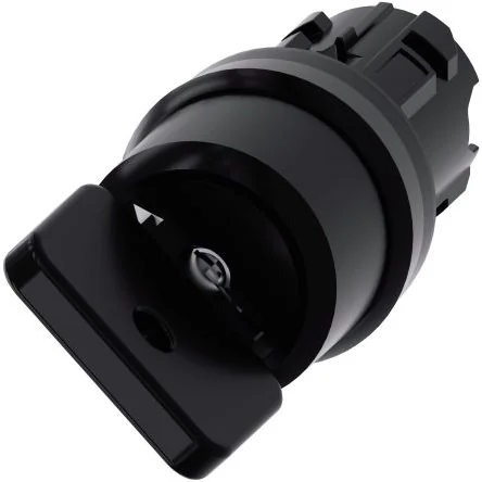 Under the brand name SIRIUS ACT, Siemens offers a unique portfolio of pushbuttons and signaling devices with global product approvals in four modern design lines of rugged genuine metal and high-grade plastic. An innovative snap-on concept makes the task of installing a unit so easy that it can be done with one hand and without any special tools. Groove-free holes are adequate as mounting holes since full twist prevention is already integrated. Thanks to the high degree of protection throughout, the rugged devices are suitable for use in industry and outdoors. Even cleaning with a high-pressure jet is possible. Neither dust, oils, nor caustic solutions can interfere with reliable operation. As well as standard wiring, the devices can also be connected to the controller via PROFINET, AS-Interface or IO-Link. Doing so will help you to reduce wiring time and effort, minimize error sources and have more flexibility. The graphical Online Configurator provides convenient support when selecting and ordering individual devices, enclosures and labels. Extensive documentation (e.g. manual, 3D data, terminal diagram) is available. Note: Single device, please order holders and modules separately.Key-operated switch O.M.R, 22 mm, round, plastic, lock number 73034, black, with 2 keys, 2 switch positions O-I, latching, actuating angle 90°, 10:30h/13:30h, Key removal O