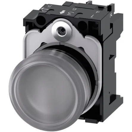 Siemens, SIRIUS ACT 3SU11, Panel Mount Clear LED Indicator, 22mm Cutout, Round, 110V ac - 3SU1103-6AA70-1AA0