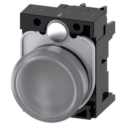 Siemens, SIRIUS ACT 3SU11, Panel Mount Clear LED Pilot Light Complete, 22mm Cutout, Round, 230V ac - 3SU1106-6AA70-1AA0