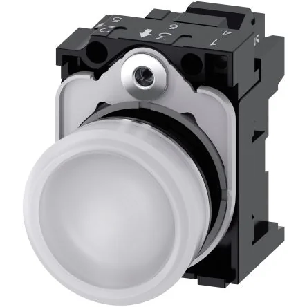 Siemens, SIRIUS ACT 3SU11, Panel Mount White LED Indicator, 22mm Cutout, Round, 110V ac - 3SU1153-6AA60-3AA0