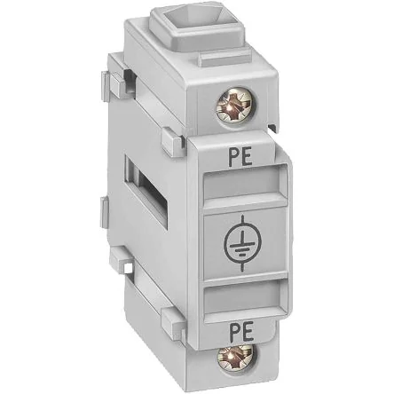 The Siemens earth block with neutral conductor PE terminal .It is used for front mounting and has current rating up to 16A.Main and emergency switching off