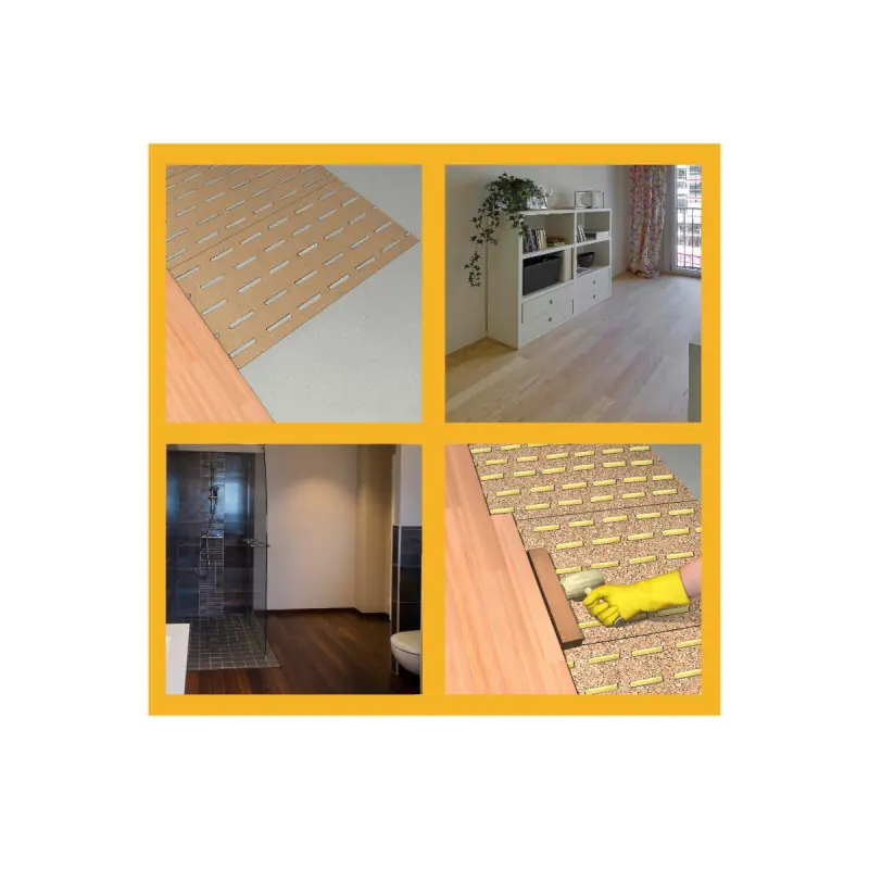 - Suitable for solid or engineered parquet with tongue and groove installation in English style, with thermal resistance less than 0.08 m².°K/W