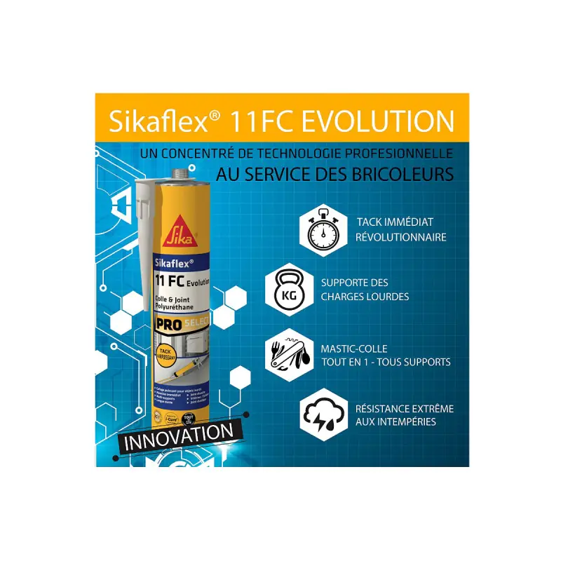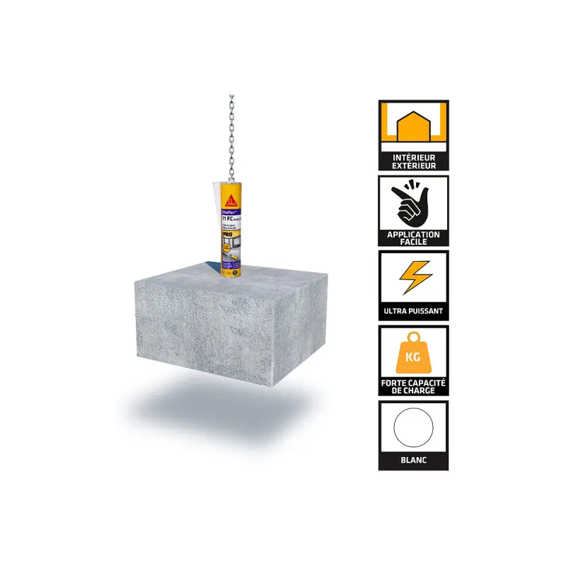 The SIKA Sikaflex 11 FC Evolution adhesive sealant is an ideal sealant for your bonding and sealing tasks. It has very good adhesion on concrete, mortar, fibre-cement, ceramics, wood, metal... With a powerful immediate hold, this product has a high load capacity for both indoor and outdoor applications. This product is classified A+ "very low emissions" on the index of volatile substance emissions in the air, presenting an inhalation toxicity risk on a scale from A+ (very low emissions) to C (high emissions).