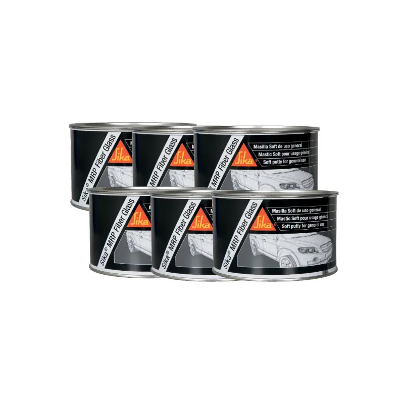 A pack of 6 glass fibre fillers for sheet metal - SIKA MRP Glass Fiber - Grey - 2kg