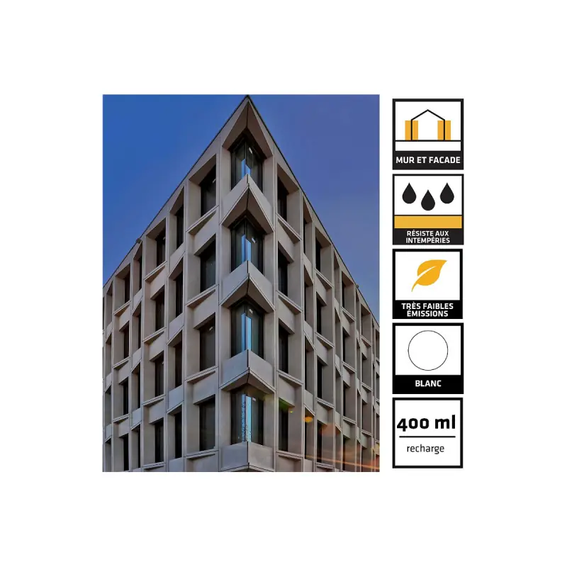 The high-performance sealant SIKA SikaHyflex 250 Façade is easy to apply and easy to smooth. It is ideal for elastic sealing work and expansion joints. Of very good quality and high performance, this product adheres to many substrates and withstands the elements very well for an extended lifespan. This product is rated A+ "very low emissions" on the volatile organic compound emission index, which presents an inhalation toxicity risk on a scale from A+ (very low emissions) to C (high emissions).