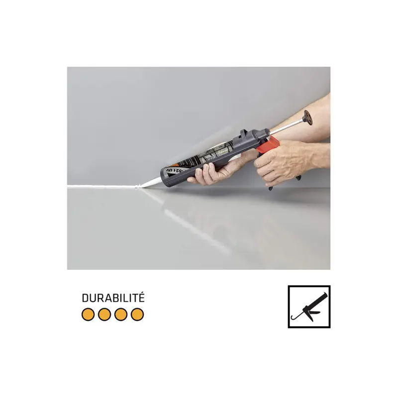This refill of hybrid sealant SIKA Sikaflex 521 UV - White - Refill 400ml adheres to most surfaces (wood, metals, primers, and paints, ceramics, plastics...). It is ideal for all your sealing joint work intended to withstand harsh weather conditions. Easy to use and durable, this adhesive can be painted after being sanded.