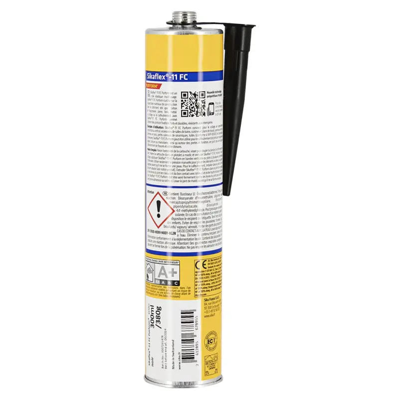 The Sikaflex 11 FC Purform multi-purpose adhesive sealant is a single-component elastic adhesive sealant suitable for multiple uses. Ideal for bonding and sealing your joints on most construction materials, it is the perfect product for adhesion and waterproofing. It is easy to apply and has excellent mechanical resistance to time and weather conditions. Usable indoors and outdoors, it is suitable for use on concrete, metal, stone, wood, glass, ceramic... This product is classified A+ "very low emissions" on the index of volatile organic compound emissions in the air, presenting an inhalation toxicity risk on a scale from A+ (very low emissions) to C (high emissions).