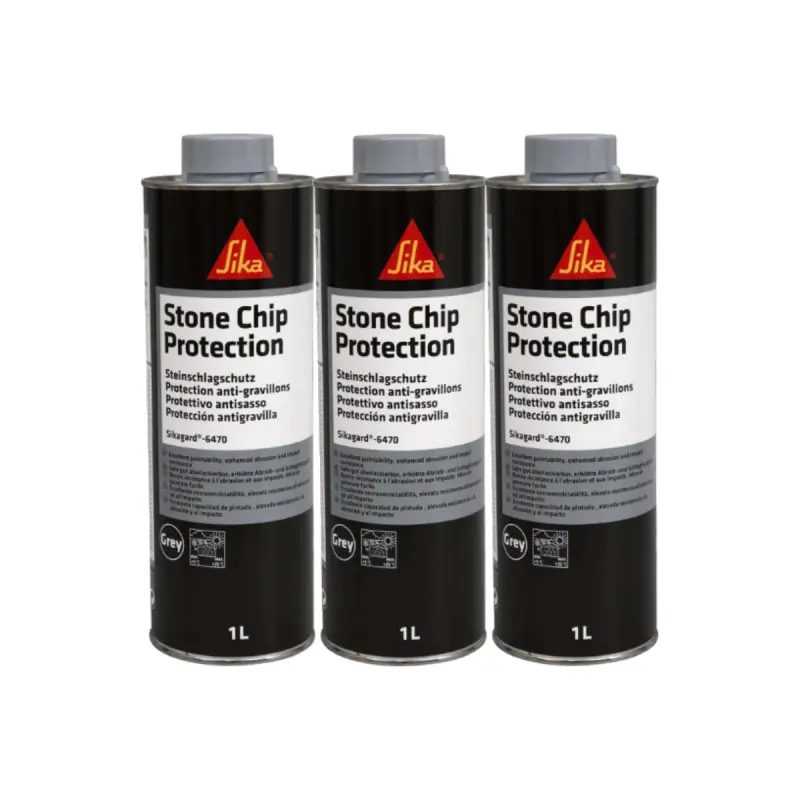 Thispack of 3 SIKA Sikagard 6470 anti-stone chip coatings - Grey - 1L contains protective anti-corrosion coatings designed for the repair and protection of vulnerable painted vehicle parts (sills, wheel arches, front and rear aprons). It can also be applied as a soundproofing material to reduce noise on certain parts such as wheel arches.