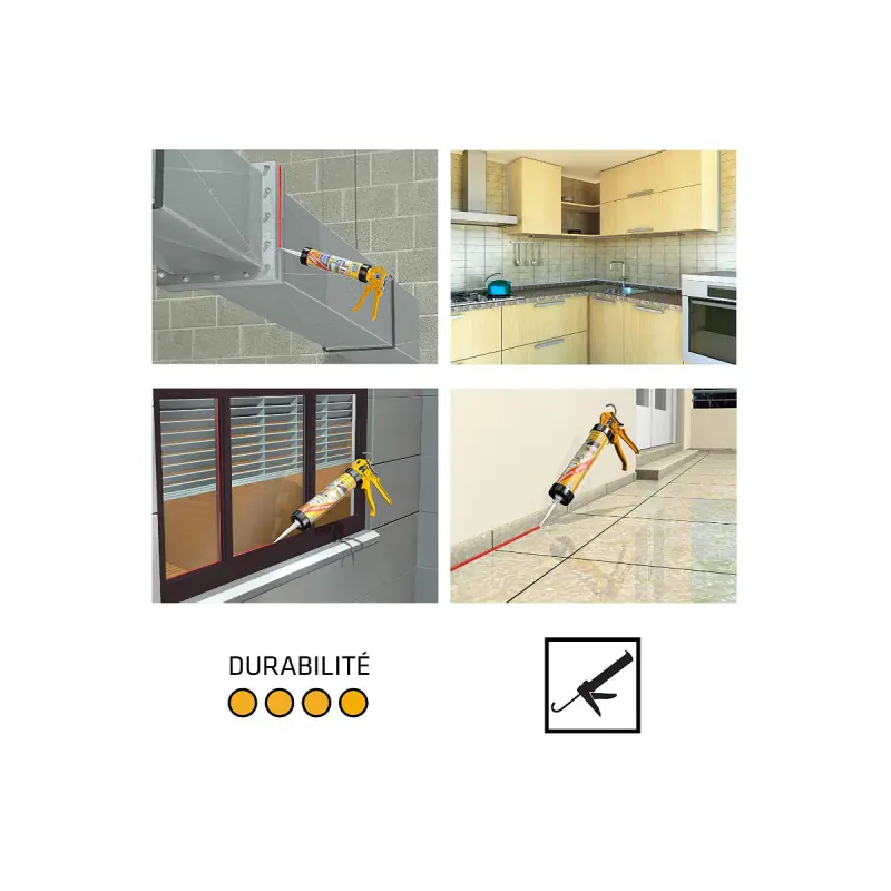 TheSIKA Sikasil construction silicone sealant - Grey - 300ml is a universal silicone sealant suitable for making construction and carpentry joints both indoors and outdoors. It applies and smooths perfectly for a clean and neat finish. It has good adhesion without a primer on concrete, cement mortar, untreated aluminium, glass, copper, steel, zinc, tiles, enamel, and most varnished, impregnated, or painted woods, rigid PVC, etc.
