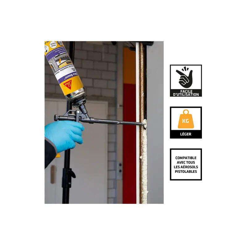 The SIKA Boom Dispenser Polyurethane Foam Gun this gun allows for the extraction of polyurethane foams. It is recommended for its ease of use and also for its ergonomics.