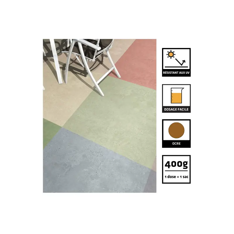 This powder dye for cement, lime, and plaster SIKA SikaCem Color - Ochre - 400g will colour all your concrete, mortar, and renders. You can easily colour your screed mortars, jointing mortars, concrete slabs, and any other decorative concrete. With SikaCem® Color, a powder dye made from mineral oxides, achieve a coloured shade with a natural effect for an aesthetic result.