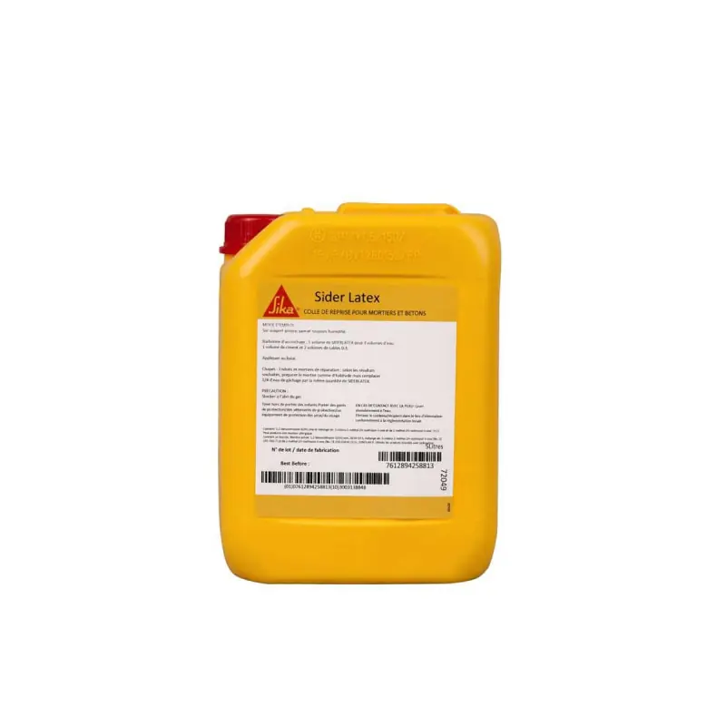 Pack of 3 repair adhesives for mortars and concretes - SIKA SiderLatex - Milky white - 5L this copolymer resin emulsion SiderLatex is compatible with all lime and plaster cements. This product aims to increase the plasticity and improve the adhesion of the mortar on all surfaces.
