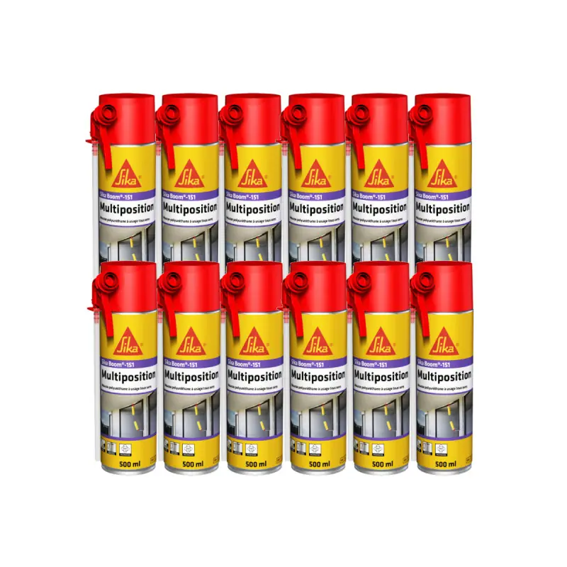 SIKA Polyurethane Foam - SikaBoom 151 Multiposition - 500 ml one-component, self-expanding polyurethane foam in a manual aerosol. Its special formulation allows for multiposition use (application at any angle). This product is designed for insulation and filling cavities and voids, filling around pipes and conduit penetrations, etc. The product can be used for both indoor and outdoor applications.