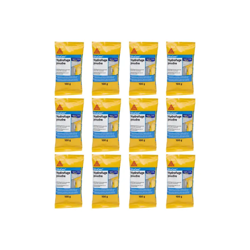 A pack of 12 SIKA SikaCem Waterproofing Additives for Concrete and Mortar - 100g