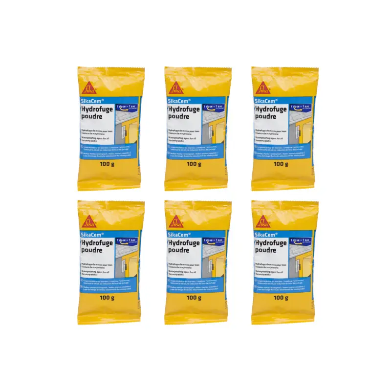 A pack of 6 SIKA SikaCem Hydrofuge Powder waterproofing additives for concrete and mortar - 100g