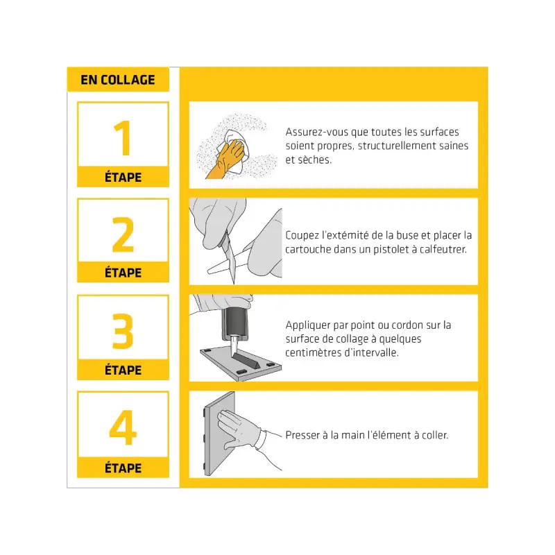 - Versatile product suitable for bonding skirting boards, floor and window joints, or for threshold bonding