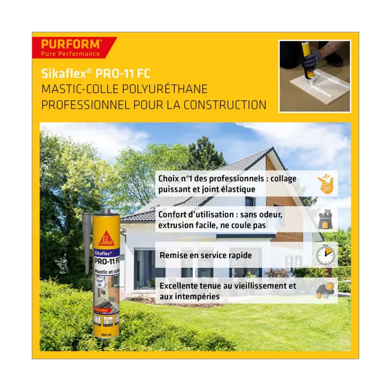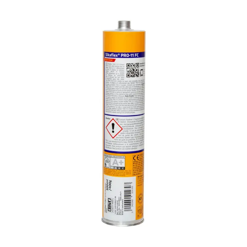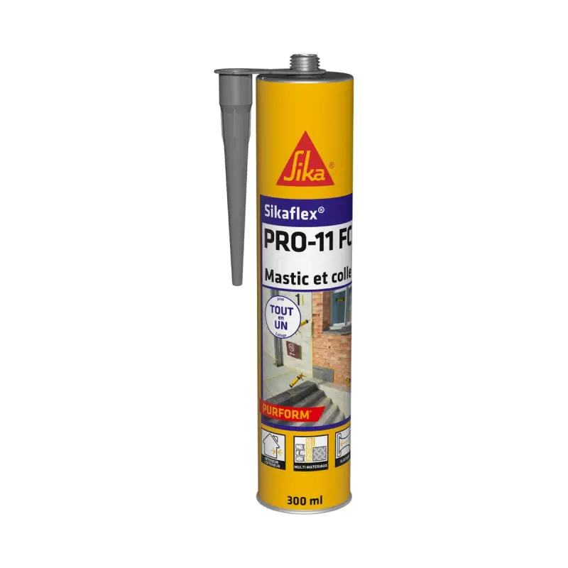 The SIKA Sikaflex PRO 11 FC Purform Adhesive Sealant - Anthracite - 300ml is ideal for bonding, sealing, and caulking work with very good insulation qualities. It is a single-component adhesive sealant with a very low monomer content. It polymerises quickly and offers high adhesion. With permanent elasticity, it has excellent resistance to ageing and weather conditions, does not run during application, and is therefore very practical to use. A professional reference for sealing and bonding in construction, the adhesive sealant Sikaflex® Pro-11 FC contains a purified polyurethane base (resistance, flexibility, durability) with very low volatile organic compound content. The Purform® technology enhances performance for faster curing, increased durability, and a healthier environment.