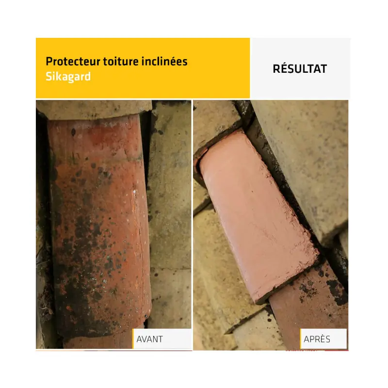 SIKA Sikagard Protection Sloped Roof Paint - Transparent - 4L effectively protects sloped roofs from water infiltration thanks to an elastic membrane with excellent flexibility. A long-lasting protection that withstands weather conditions, aging, prolonged frost action, and UV rays. Ideal for the renovation of roofs and the repair of slate tiles, zinc or PVC gutters, for the treatment of chimney flashings, the protection of façades against rainwater infiltration, and for bridging cracks.