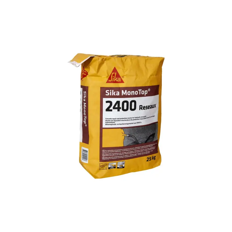ThisSIKA SikaMonoTop-2400 repair mortar networks is a one-component structural repair mortar based on PMES hydraulic binder reinforced with fibres, applicable manually or by machine and suitable for aggressive environments. It is suitable for hydraulic works, sewage networks, structural and non-structural repairs of civil engineering concrete works, as well as structures subjected to abrasion and chemical attacks.
