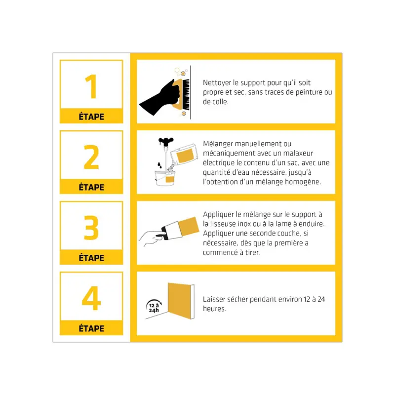 - Mixing ratio: 1.9 litres of water for a 4 kg bag