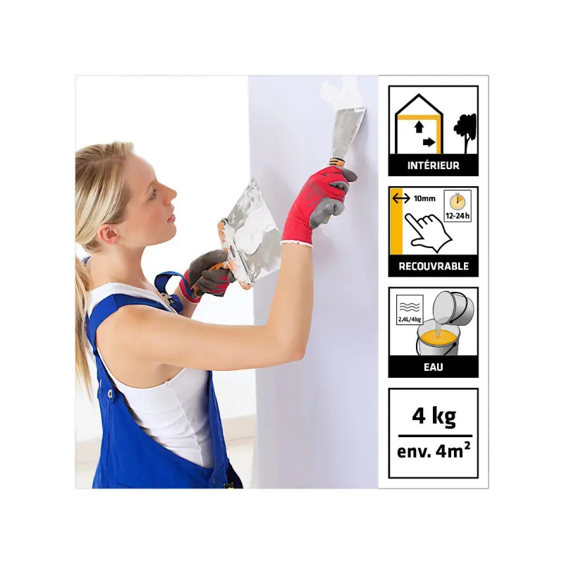 The SIKA SikaWall-274 R Powder Filling Compound - White - 4Kg is a powder-based plaster filling compound to be mixed with water. This product allows you to level uneven surfaces as well as fill and repair your walls or ceilings.